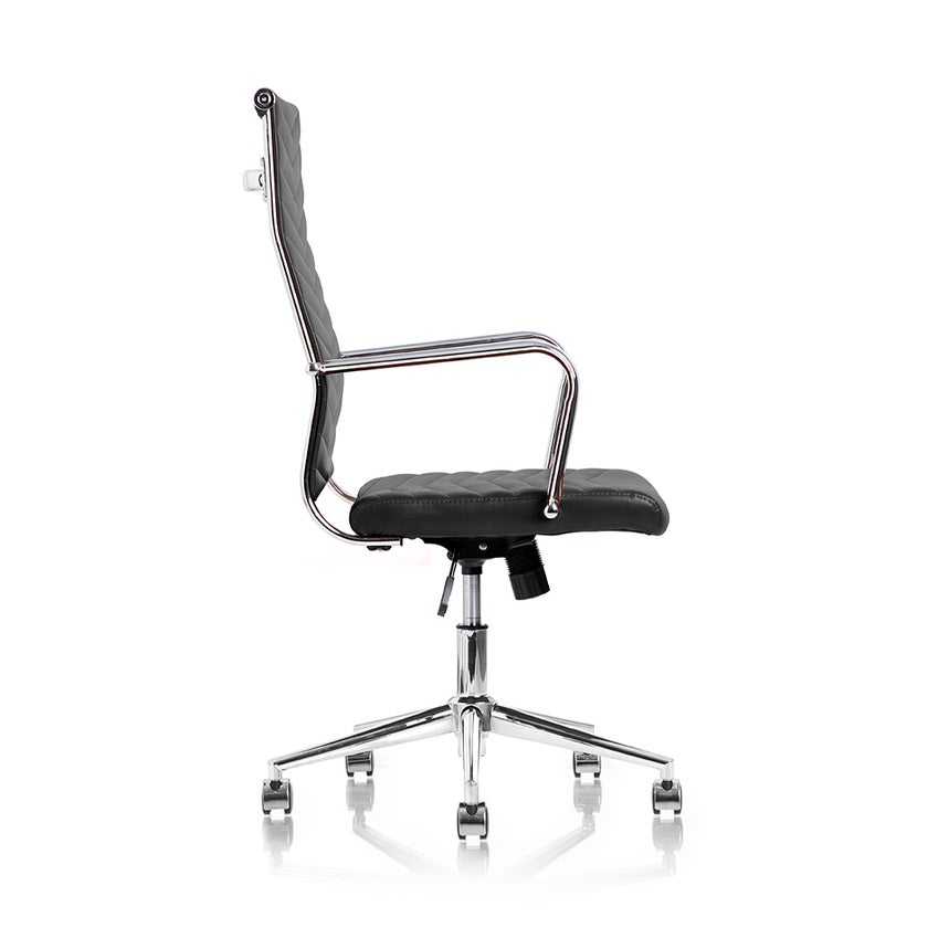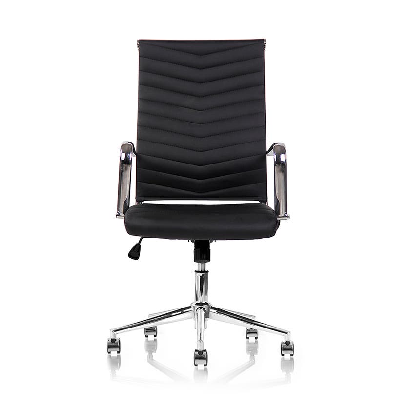 Juel är en bekväm och snygg konferensstol som ger mötesrummet en läcker touch. Stoppad sits med klädsel i V-mönstrat konstläder ger god komfort. Kromade armstöd och fotkryss. Juel är vridbar, har enkel tiltfunktion och justerbar sitthöjd för optimal användning vid alla typer av möten.
