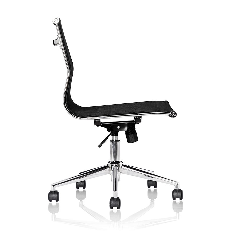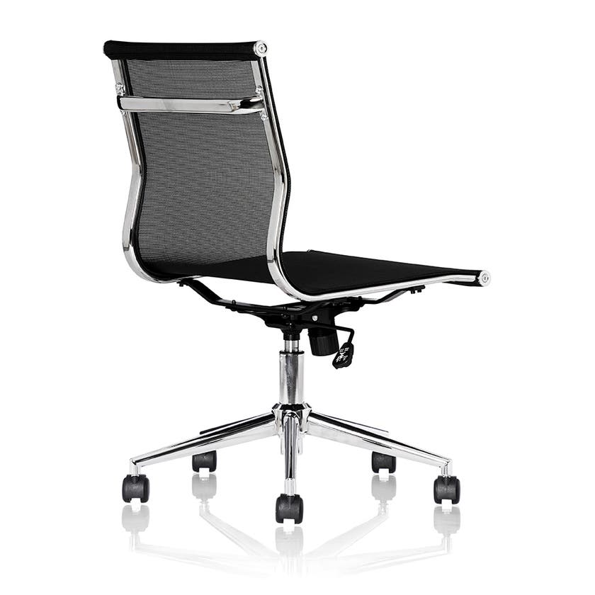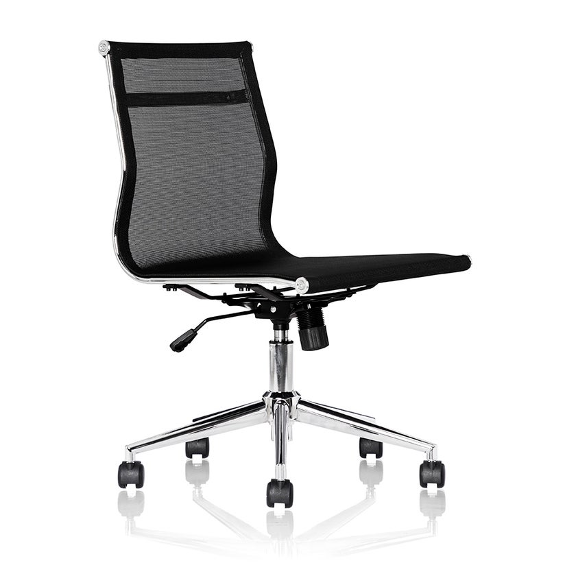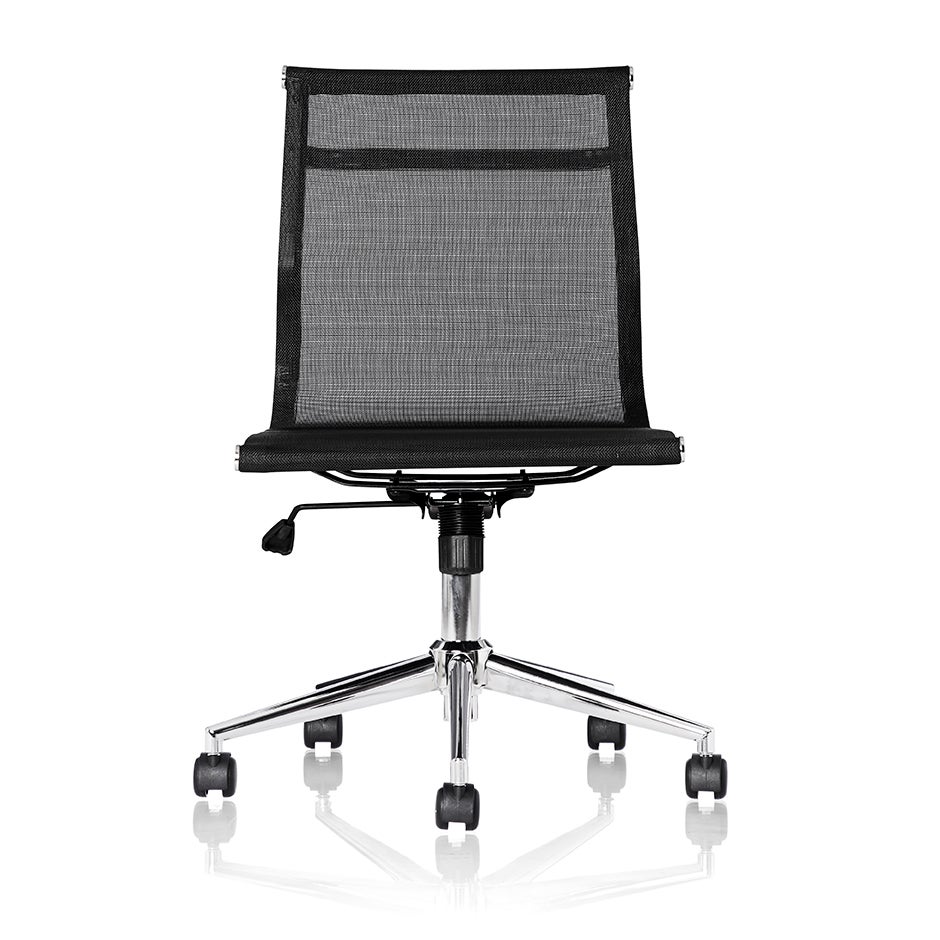 Konferensstol Zare, låg rygg, fotkryss i krom, svart mesh, sitthöjd 440-540 mm