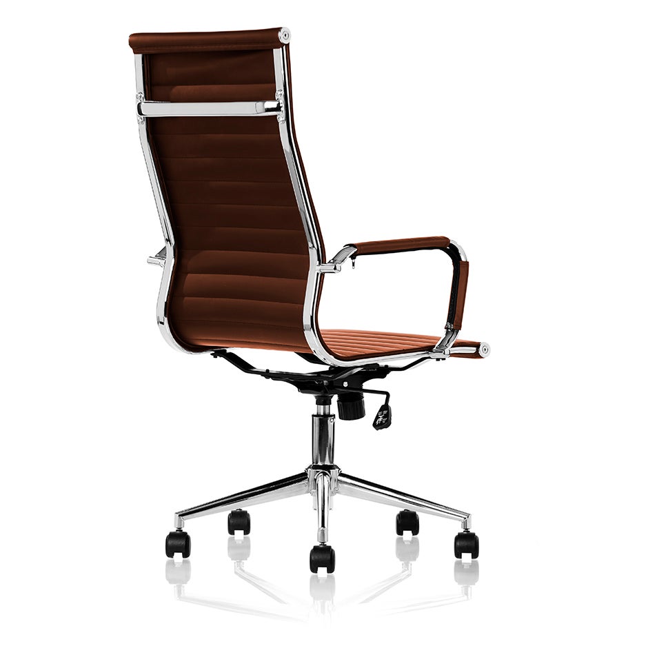 Konferensstol Zareto, armstöd och fotkryss i krom, brunt konstläder, sitthöjd 440-540 mm
