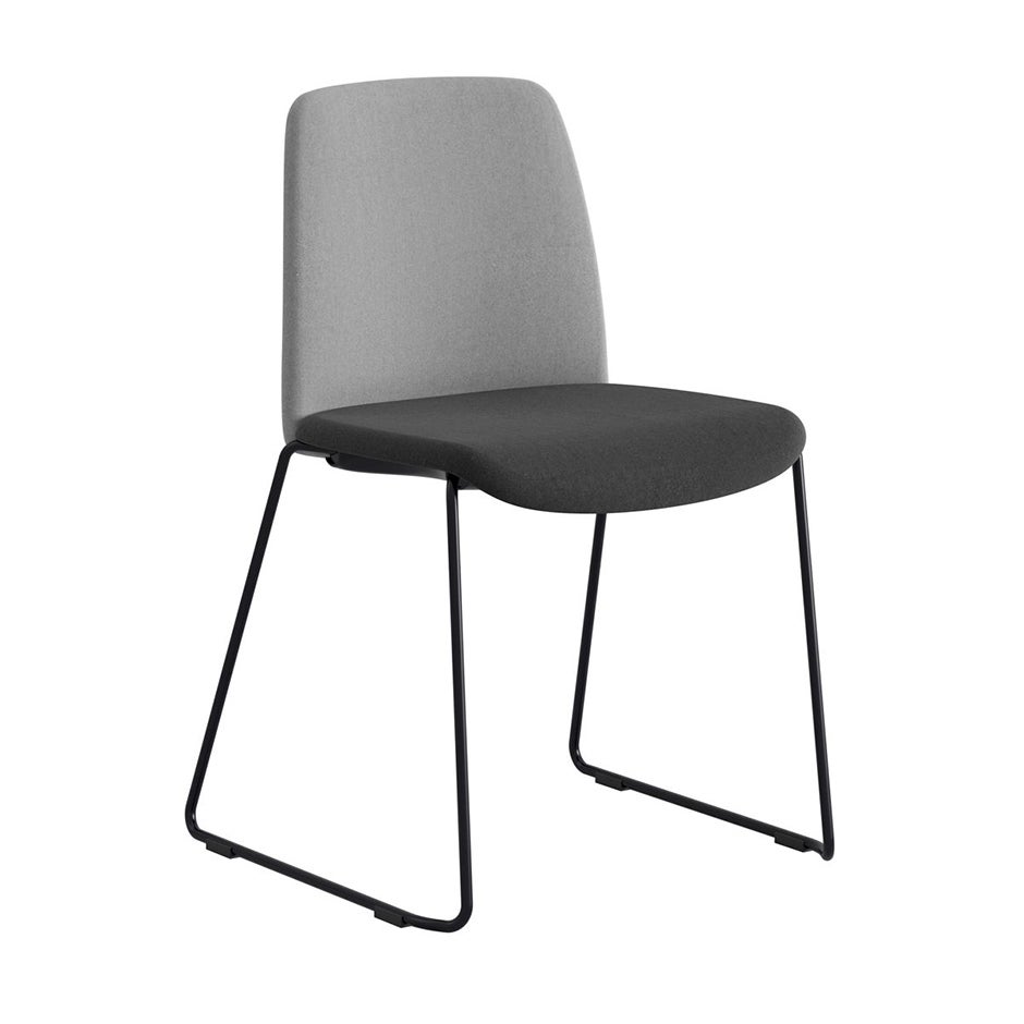 Stol Choice med medar, ljusgrå tygklädd rygg, svart tygklädd sits, svart stativ