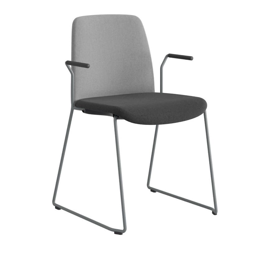 Stol Choice med medar och armstöd, ljusgrå tygklädd rygg, svart tygklädd sits, silvergrått stativ