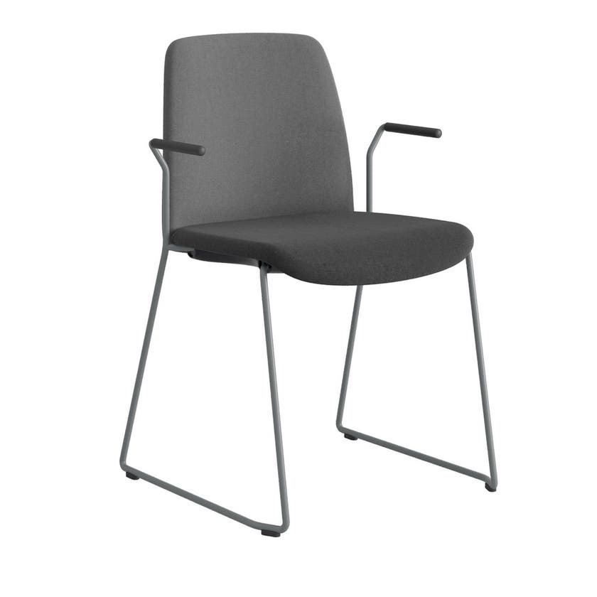 Stol Choice med medar och armstöd, mörkgrå tygklädd rygg, svart tygklädd sits, silvergrått stativ