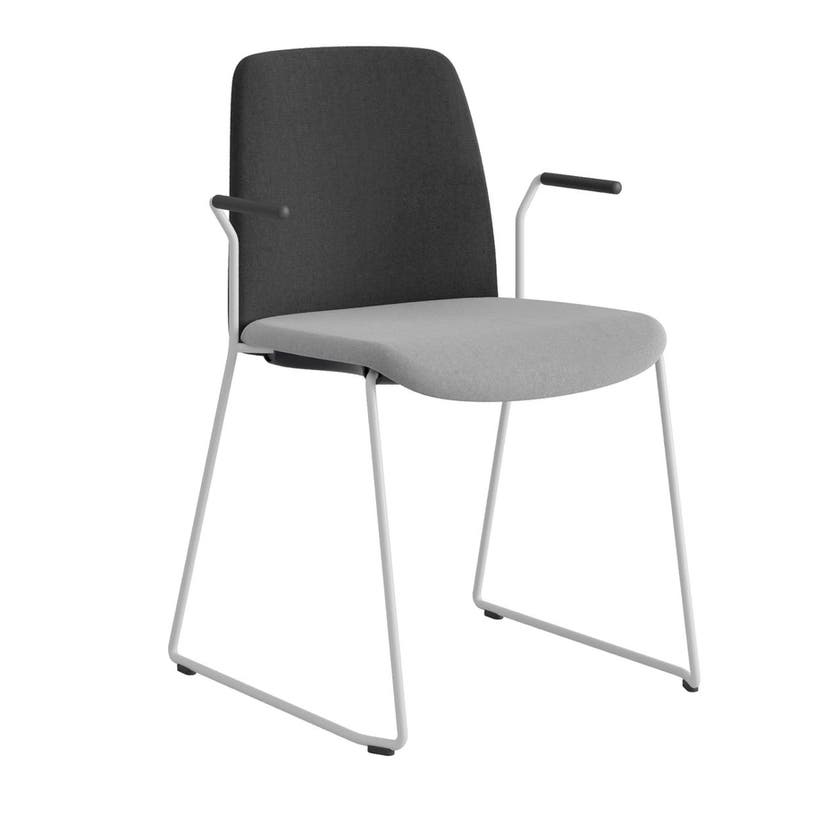 Stol Choice med medar och armstöd, svart tygklädd rygg, ljusgrå tygklädd sits, vitt stativ