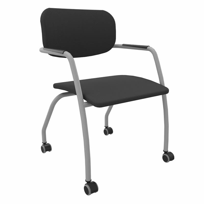 Stol Gama med armstöd, 4 ben med hjul, helklädd i tyg Era, sitthöjd 465 mm