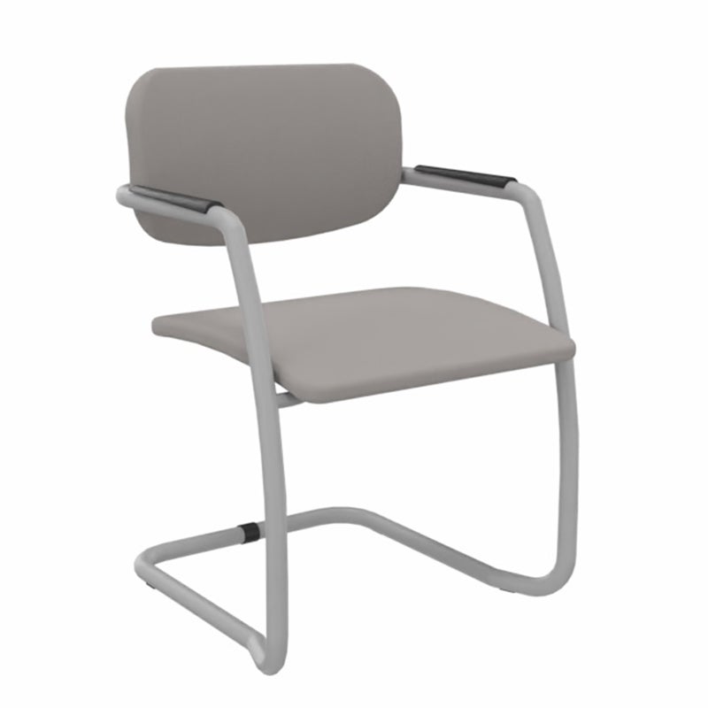 Stol Gama med sviktstativ och armstöd. Staplingsbar. Sits och rygg klädda i tyg Era (100.000 Martindale), valbar i sex kulörer. Stativet av pulverlackerad metall är valbart i metallic grå och svart. Armstödet är försett med plastlist.