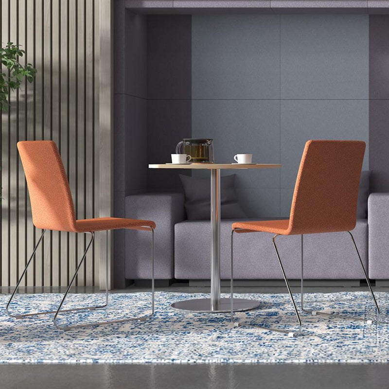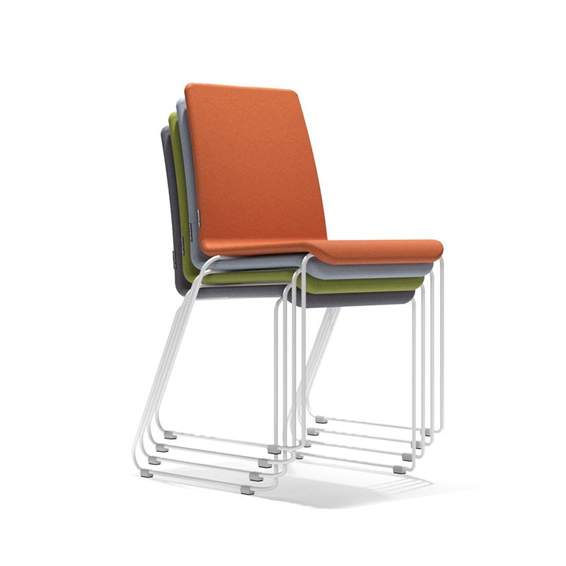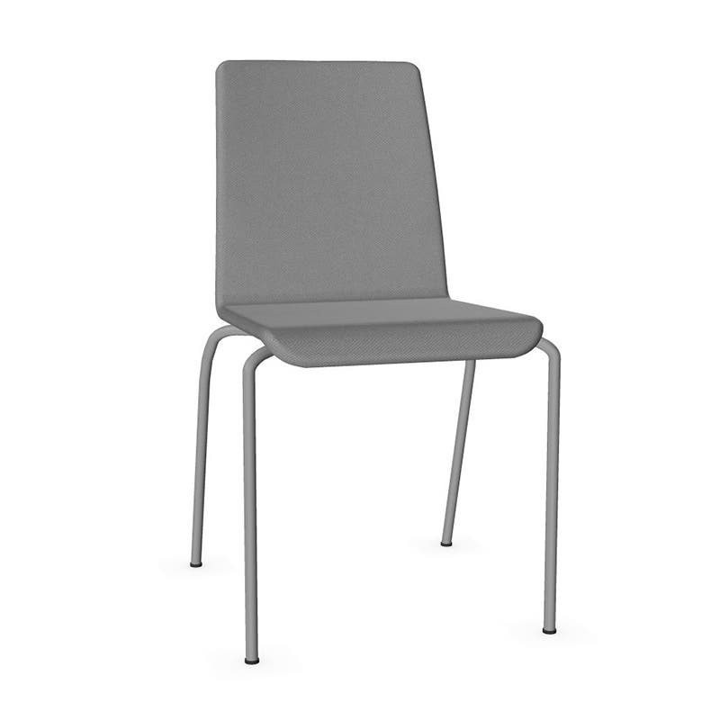 Denna variant av Moon har underrede med raka ben. Pulverlackerat stål Ø18 mm. Sits och rygg är klädda i stoppat tyg av typen Era. Som standard i 6 valbara nyanser. Underredet är valbart i 4 olika nyanser. Staplingsbar 5 st i höjd.