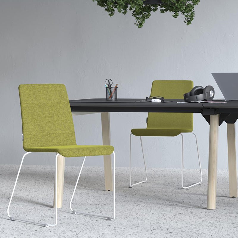 Moon Konferensstol med klädd sits. En modern variant av en klassisk typ av konferensstol med mjukt rundat och följbart snitt på sits och rygg.