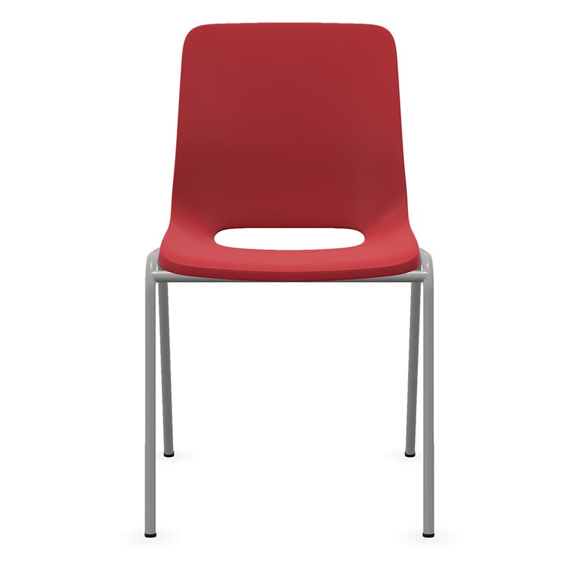 Staplingsbar stol Ana, helt  Röd Polypropylen. Grå 4-bensstativ, B495xD515 mm, sitthöjd 430 mm. Plastfot
