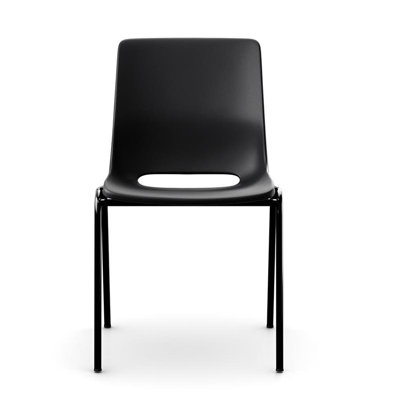 Staplingsbar stol Ana, helt  Svart Polypropylen. Grå 4-bensstativ, B495xD515 mm, sitthöjd 430 mm. Filtfot