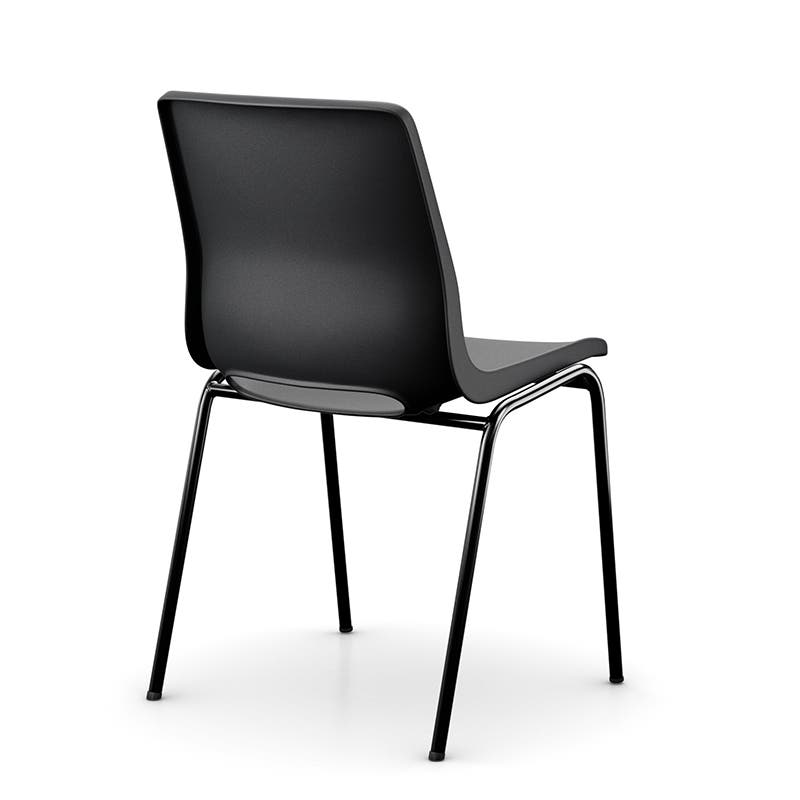 Minimalistiskt utförande med följsamt formgjutet sittskal i återvunnen polypropylen, valbart i 3 färger. Stativ i lackad metall, valbart i svart eller grått. Utrustad med filtfötter. Staplingsbar max 12 st i höjd.