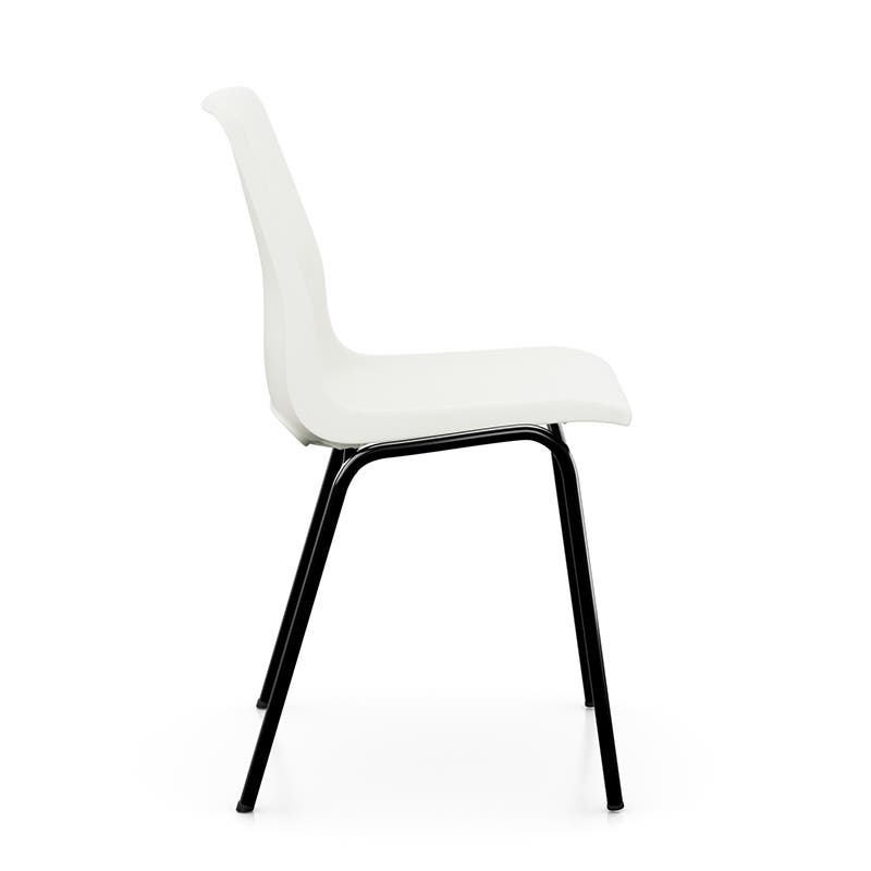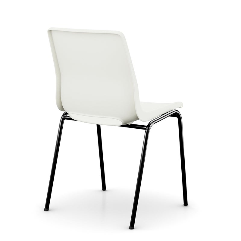 Minimalistiskt utförande med följsamt formgjutet sittskal i återvunnen polypropylen, valbart i 3 färger. Stativ i lackad metall, valbart i svart eller grått. Utrustad med filtfötter. Staplingsbar max 12 st i höjd.