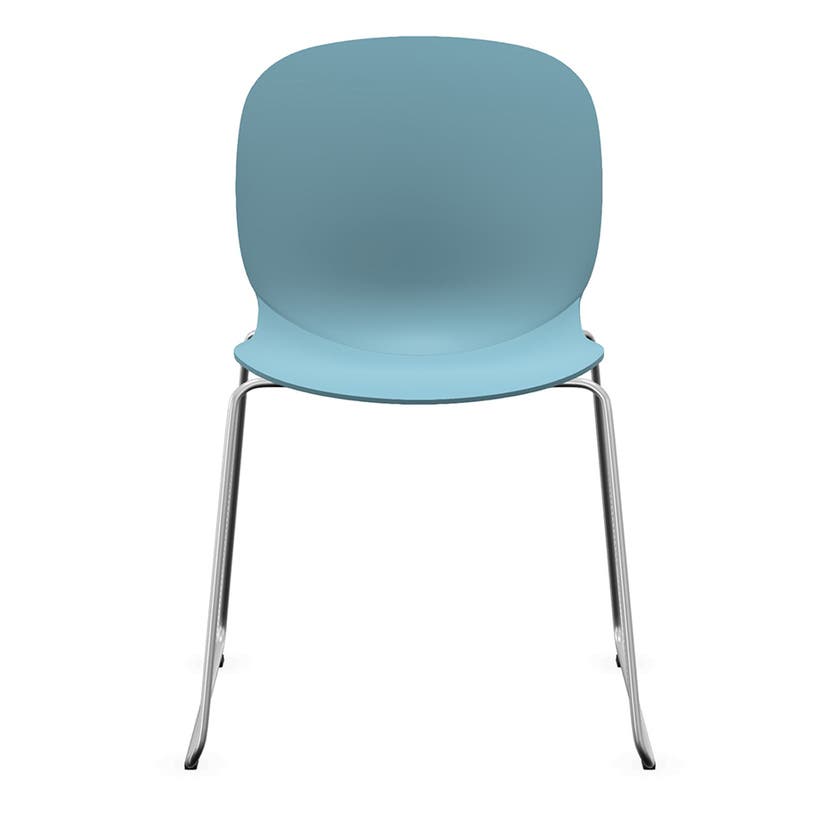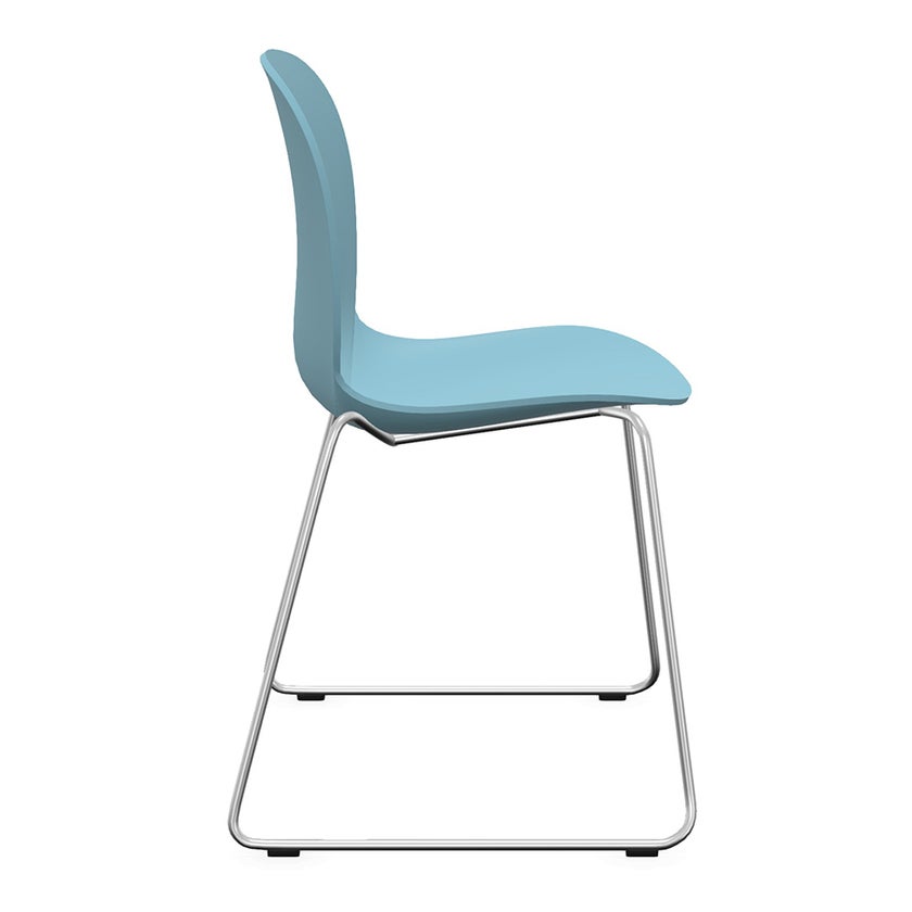 Staplingsbar stol Noor, benstativ ljusgrå medar, helt sittskal av ljusblå PP, filttassar