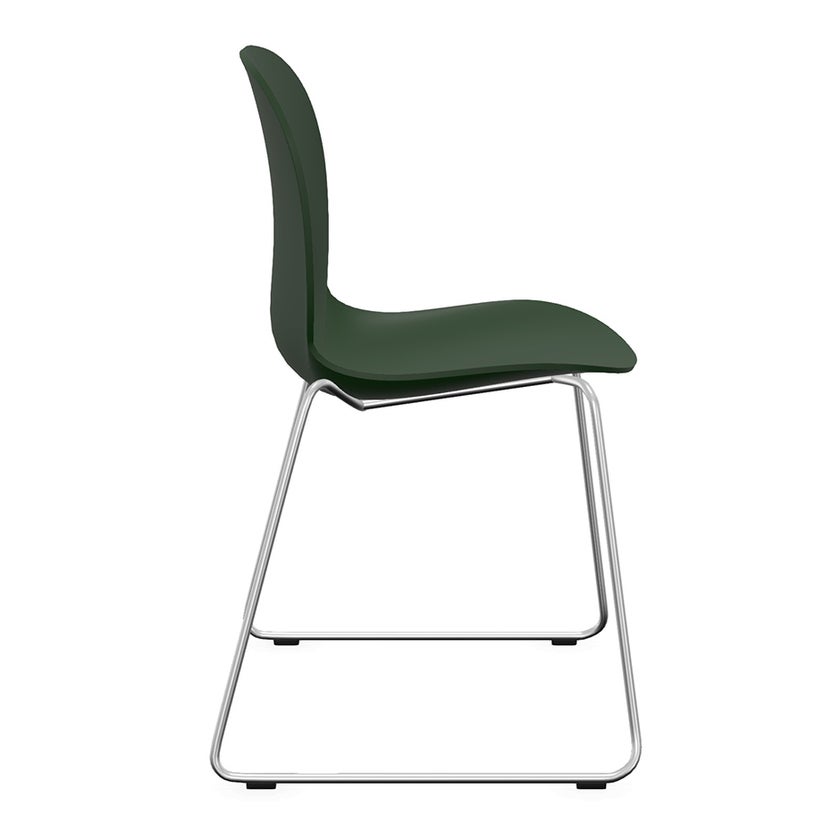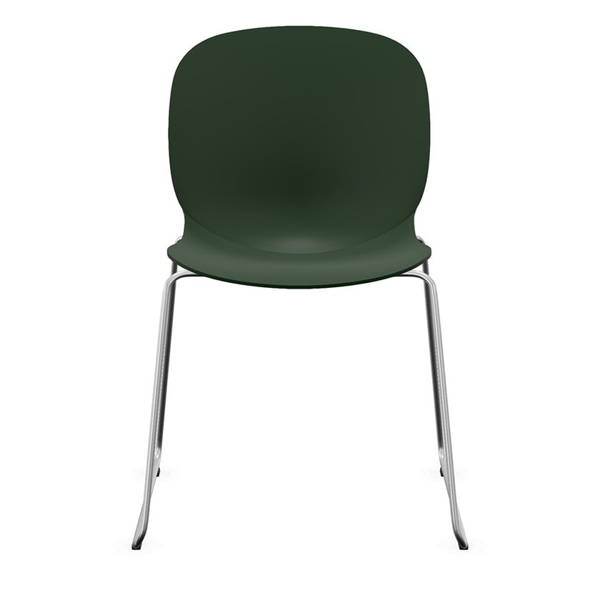 Staplingsbar stol Noor, benstativ ljusgrå medar, helt sittskal av grön PP, filttassar och kopplingsbeslag