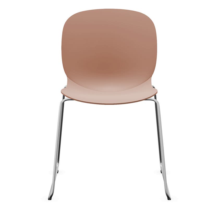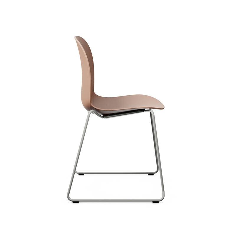 Staplingsbar stol Noor, benstativ ljusgrå medar, helt sittskal av ljusbrun PP, filttassar
