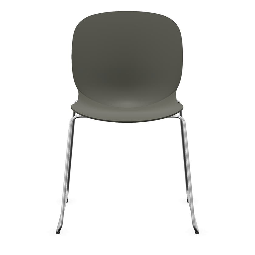 NamnStaplingsbar stol Noor, benstativ ljusgrå medar, helt sittskal av mörkgrå PP, filttassar