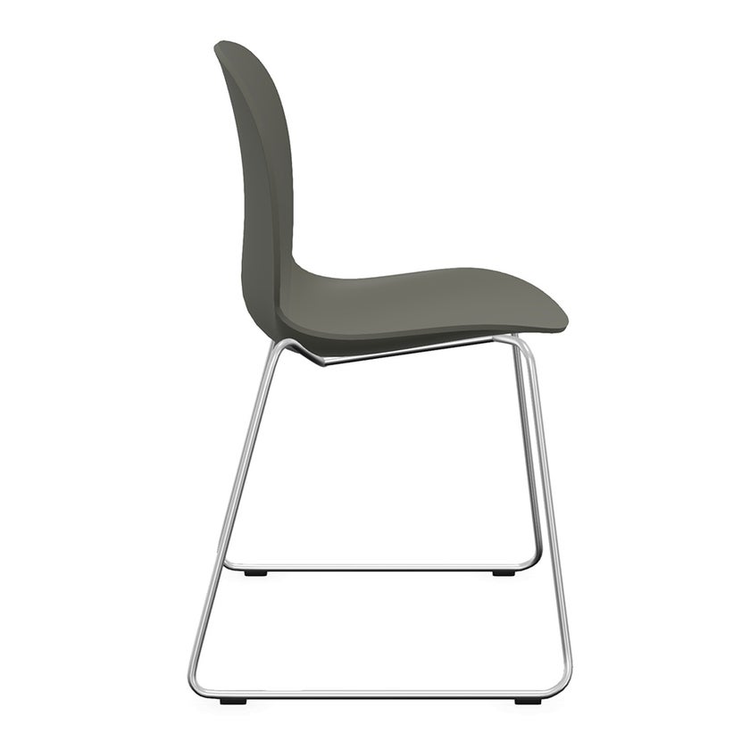 Staplingsbar stol Noor, benstativ ljusgrå medar, helt sittskal av mörkgrå PP, filttassar
