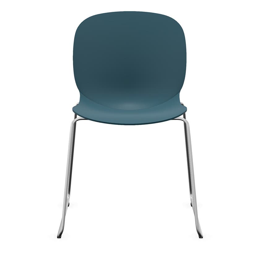 Staplingsbar stol Noor, benstativ ljusgrå medar, helt sittskal av mörkblå PP, filttassar