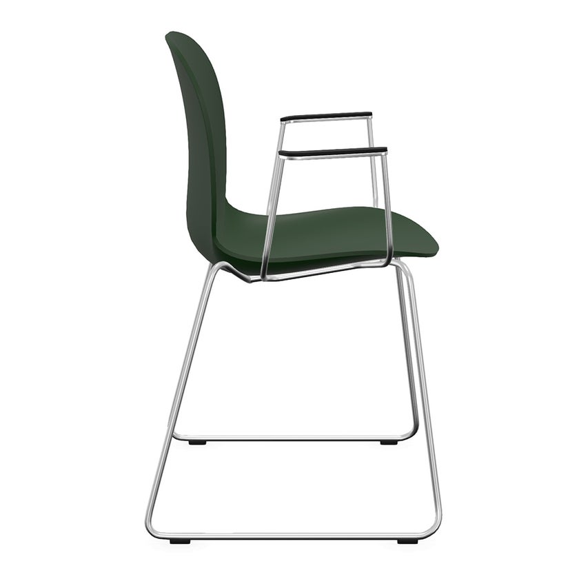 Staplingsbar stol Noor med armstöd, benstativ ljusgrå medar, helt sittskal av grön PP, filttassar
