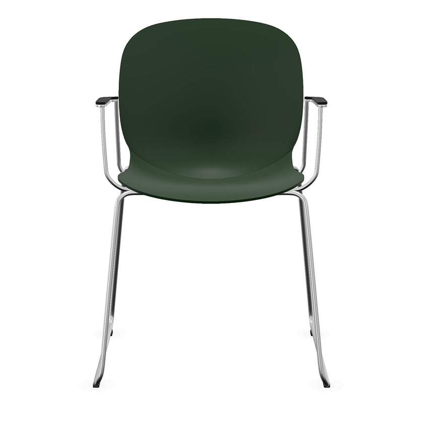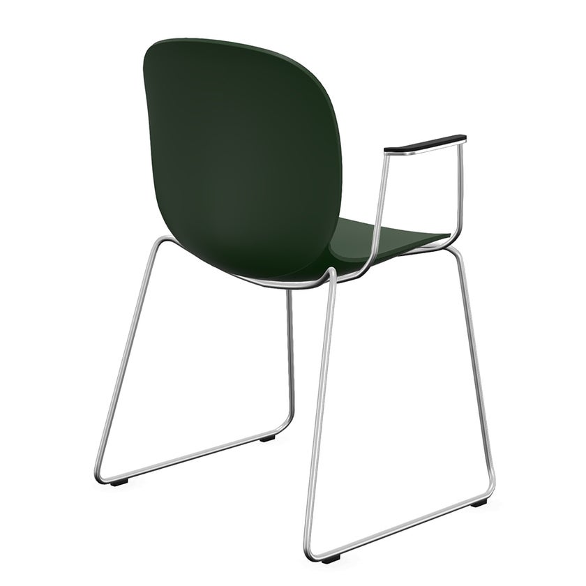 NamnStaplingsbar stol Noor med armstöd, benstativ ljusgrå medar, helt sittskal av grön PP, filttassar och kopplingsbeslag