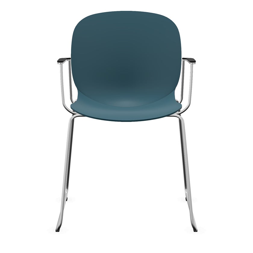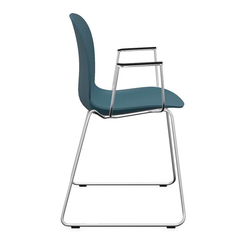 Staplingsbar stol Noor med armstöd, benstativ ljusgrå medar, helt sittskal av mörkblå PP, filttassar och kopplingsbeslag