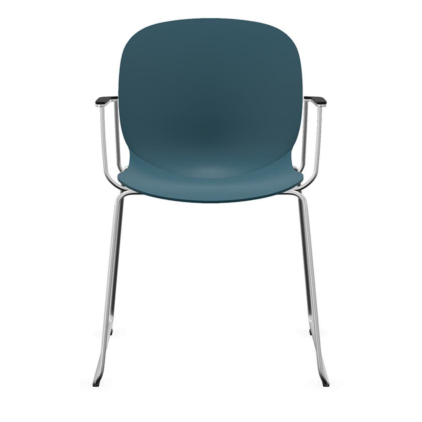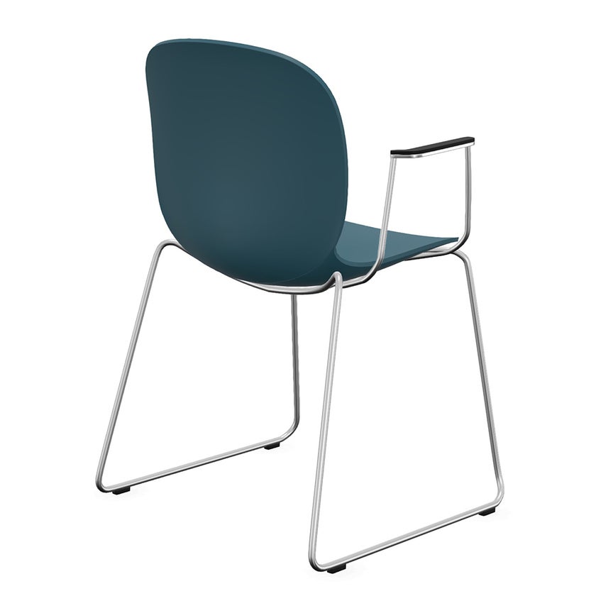 NamnStaplingsbar stol Noor med armstöd, benstativ ljusgrå medar, helt sittskal av mörkblå PP, filttassar