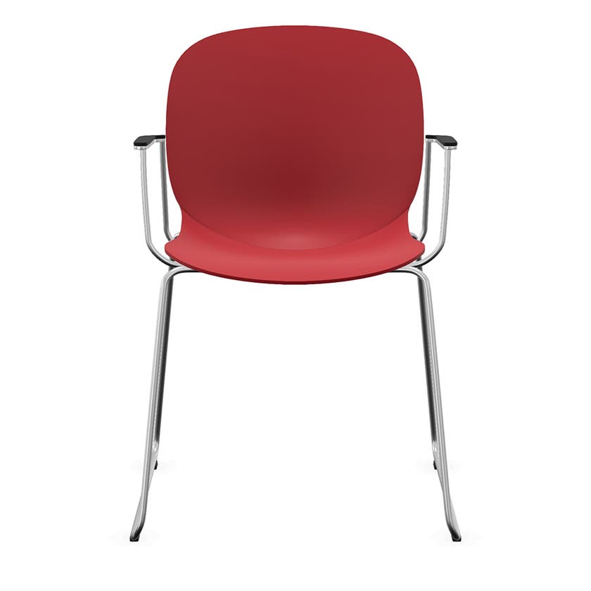 NamnStaplingsbar stol Noor med armstöd, benstativ ljusgrå medar, helt sittskal av röd PP, filttassar och kopplingsbeslag