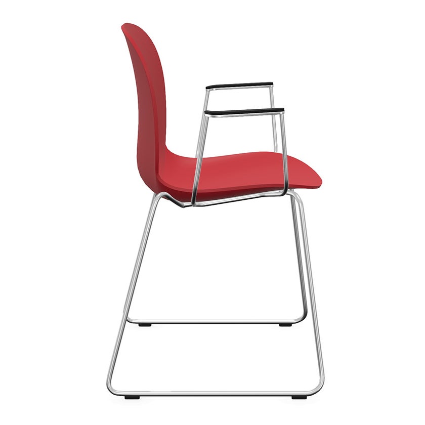 Staplingsbar stol Noor med armstöd, benstativ ljusgrå medar, helt sittskal av röd PP, filttassar