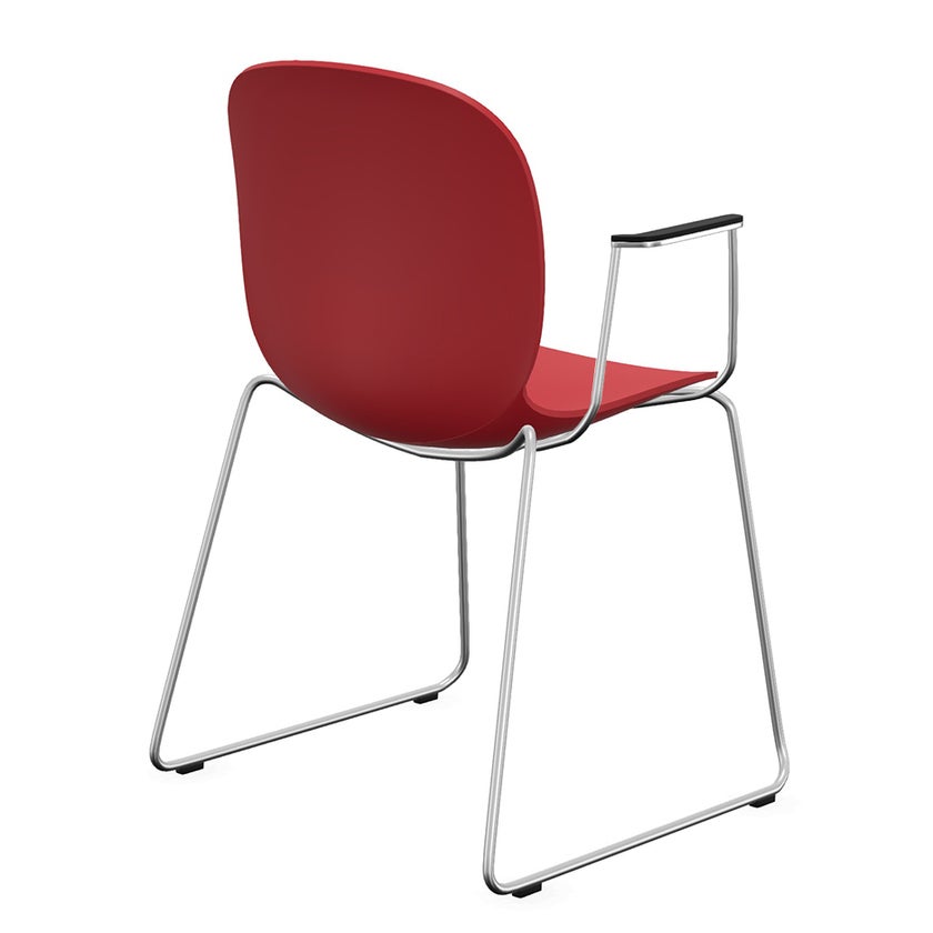 NamnStaplingsbar stol Noor med armstöd, benstativ ljusgrå medar, helt sittskal av röd PP, filttassar