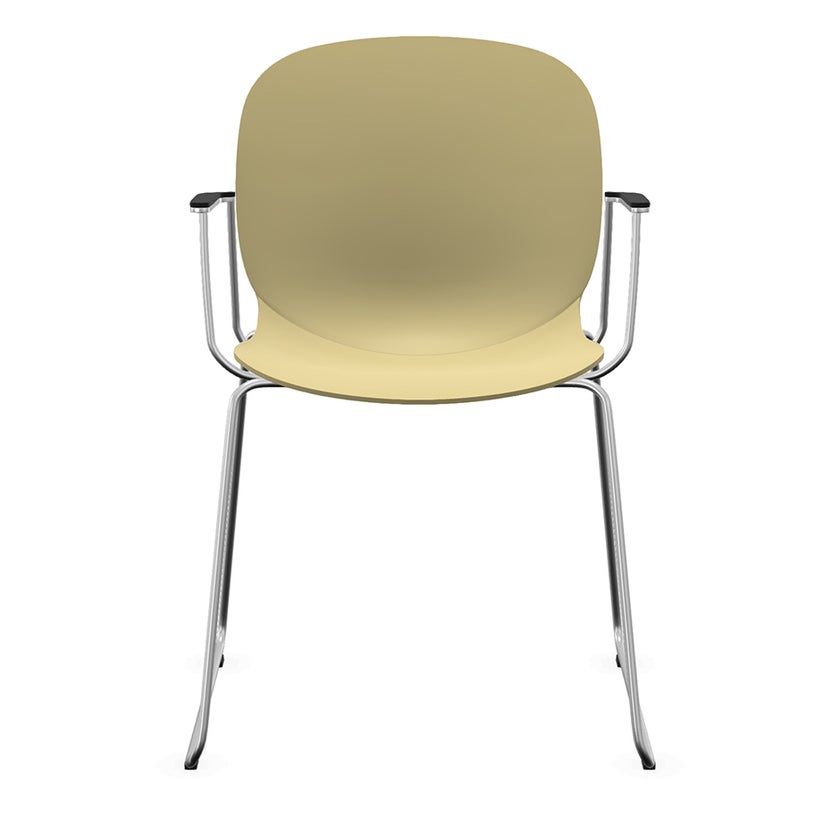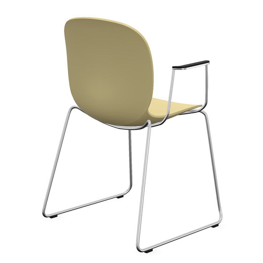 NamnStaplingsbar stol Noor med armstöd, benstativ ljusgrå medar, helt sittskal av gul PP, filttassar