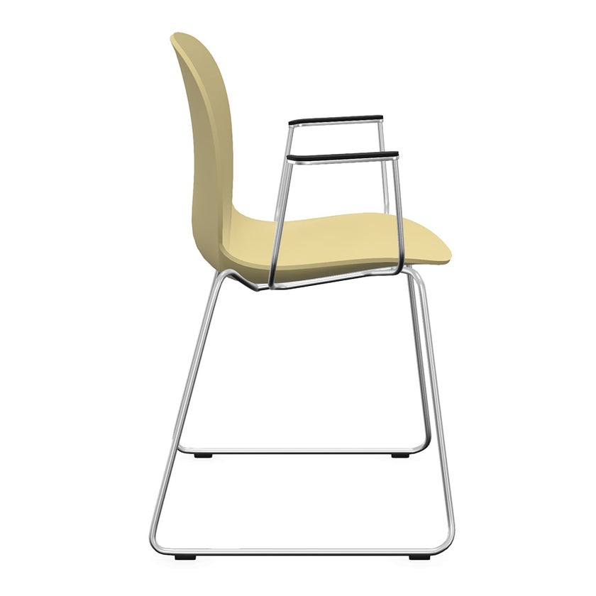 Staplingsbar stol Noor med armstöd, benstativ ljusgrå medar, helt sittskal av gul PP, filttassar