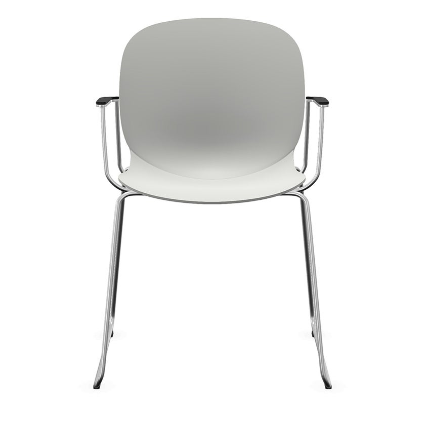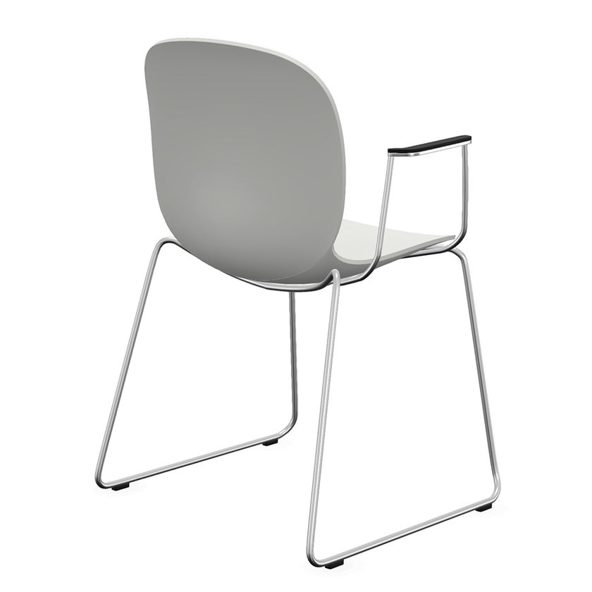 NamnStaplingsbar stol Noor med armstöd, benstativ ljusgrå medar, helt sittskal av ljusgrå PP, filttassar och kopplingsbeslag