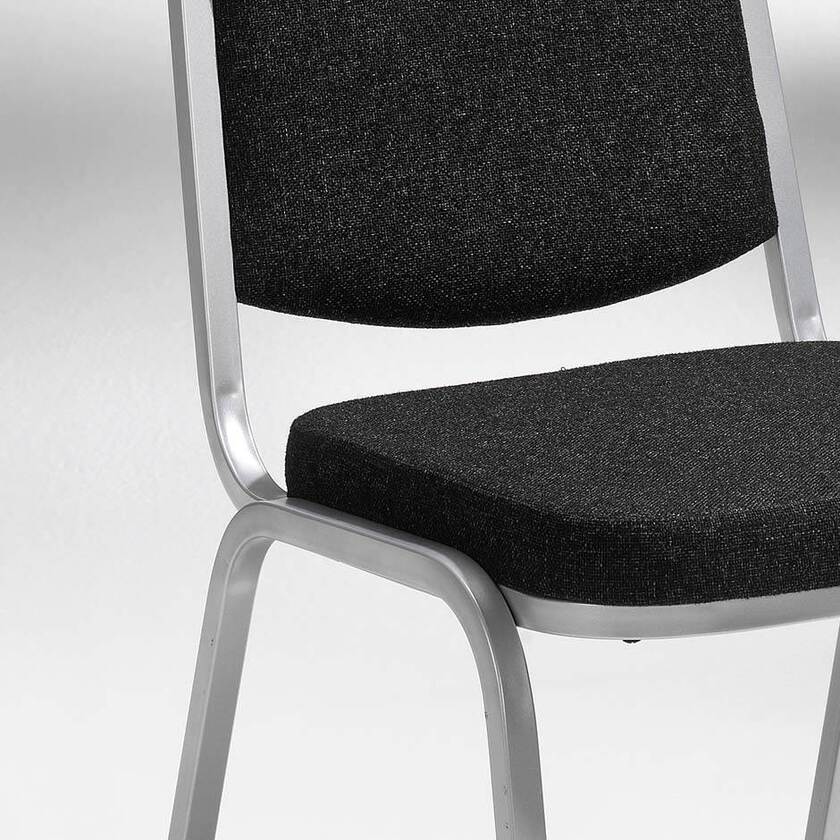 Sits och rygg är klädd i slitstarkt tyg i svart och stativet går att välja mellan stålstativ i svart, silver eller kromat.