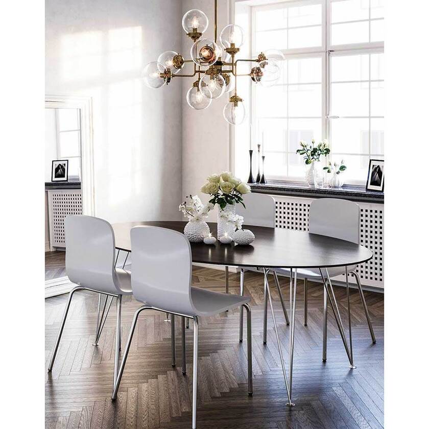 Sits och rygg är tillverkad i tålig polypropylen plast och stativet är en pulverlackerad stålställning.