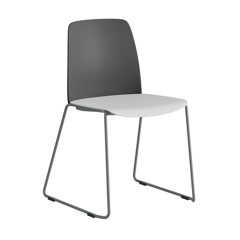 Stol Choice med medar, mörkgrå plastrygg, vit plastsits, silvergrått stativ