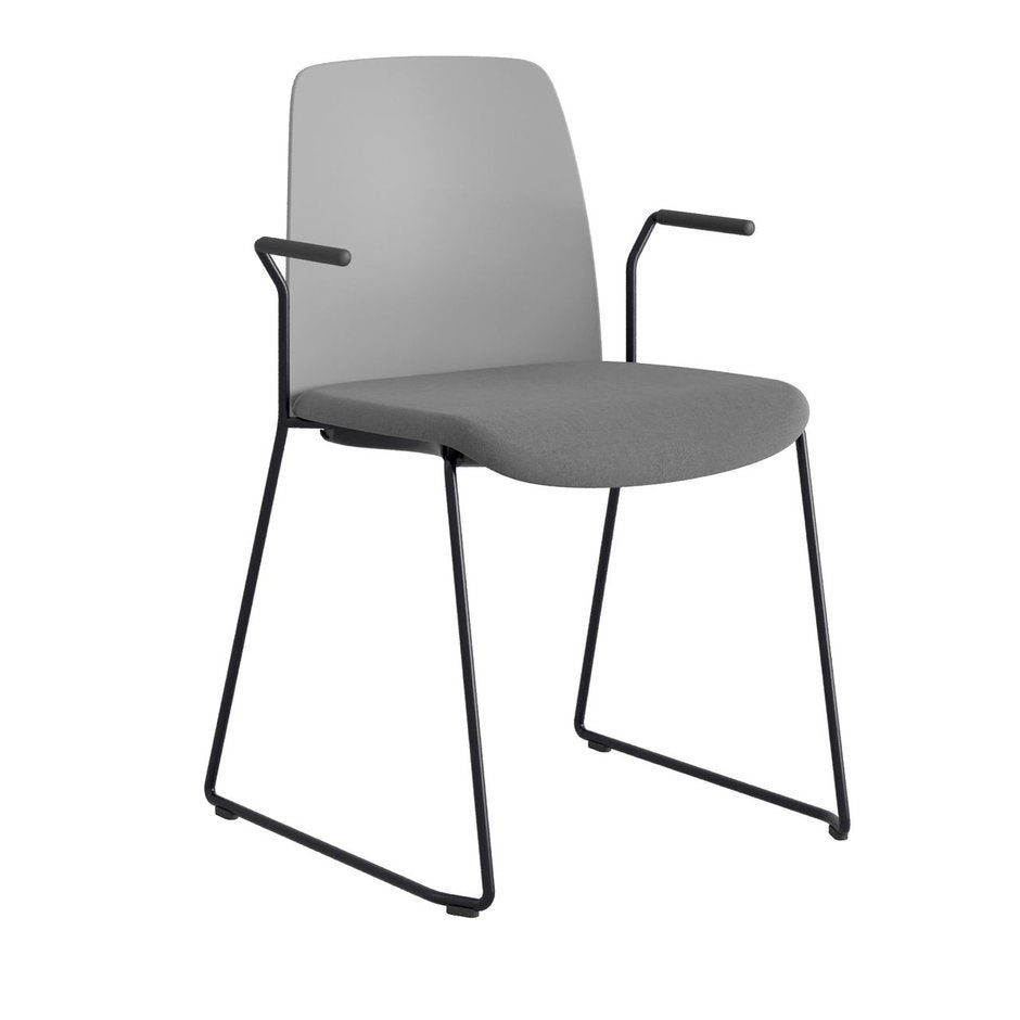 Stol Choice med medar och armstöd, mörkgrå plastrygg, mörkgrå tygklädd sits, svart stativ