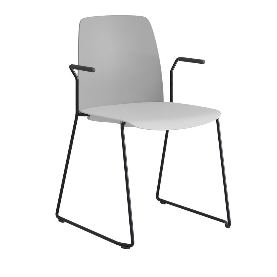 Stol Choice med medar och armstöd, mörkgrå plastrygg, vit plastsits, svart stativ
