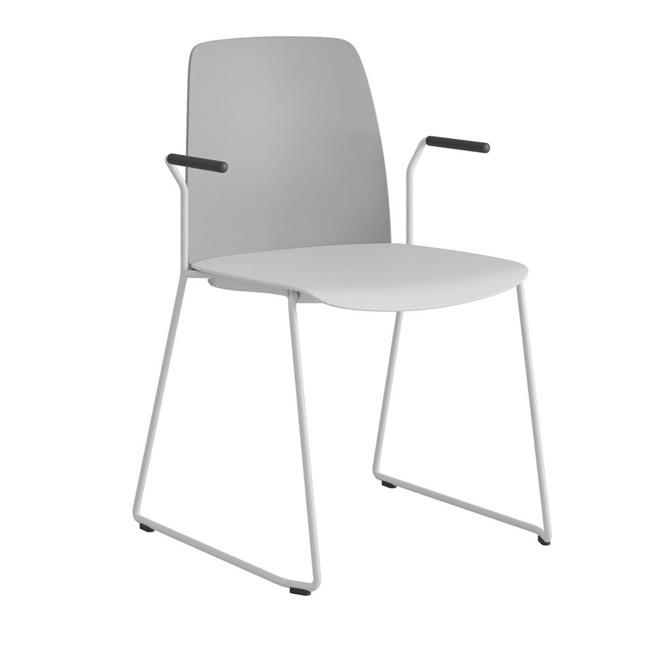 Stol Choice med medar och armstöd, mörkgrå plastrygg, vit plastsits, vitt stativ