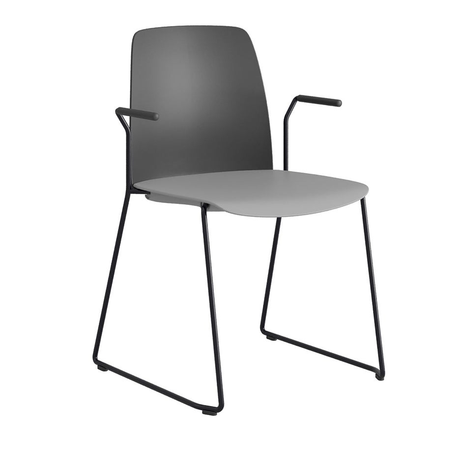 Stol Choice med medar och armstöd, svart plastrygg, mörkgrå plastsits, svart stativ