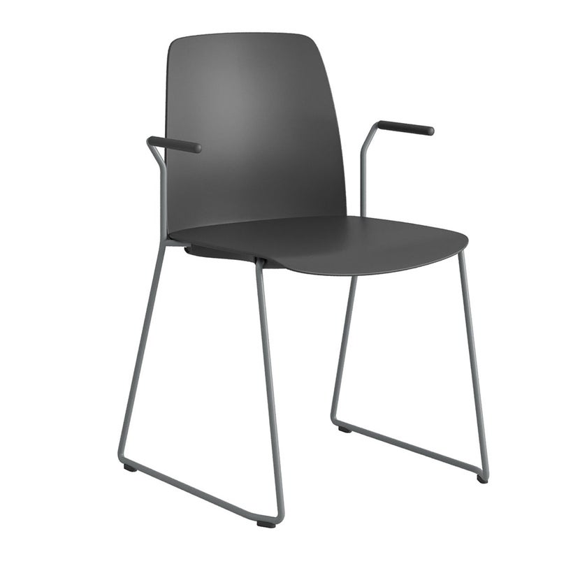 Stol Choice med medar och armstöd, svart plastrygg, svart plastsits, silvergrått stativ