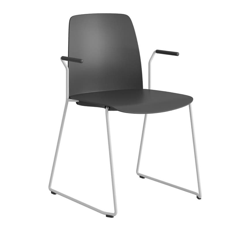 Stol Choice med medar och armstöd, svart plastrygg, svart plastsits, vitt stativ