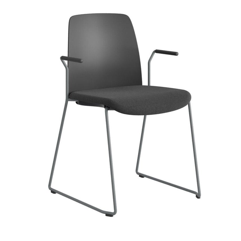 Stol Choice med medar och armstöd, svart plastrygg, svart tygklädd sits, silvergrått stativ