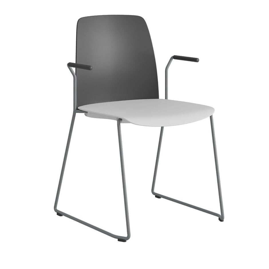 Stol Choice med medar och armstöd, svart plastrygg, vit plastsits, silvergrått stativ
