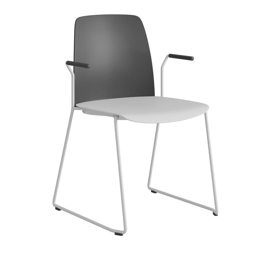 Stol Choice med medar och armstöd, svart plastrygg, vit plastsits, vitt stativ