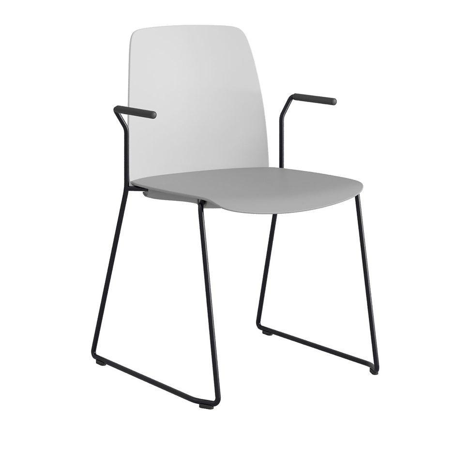 Stol Choice med medar och armstöd, vit plastrygg, mörkgrå plastsits, svart stativ
