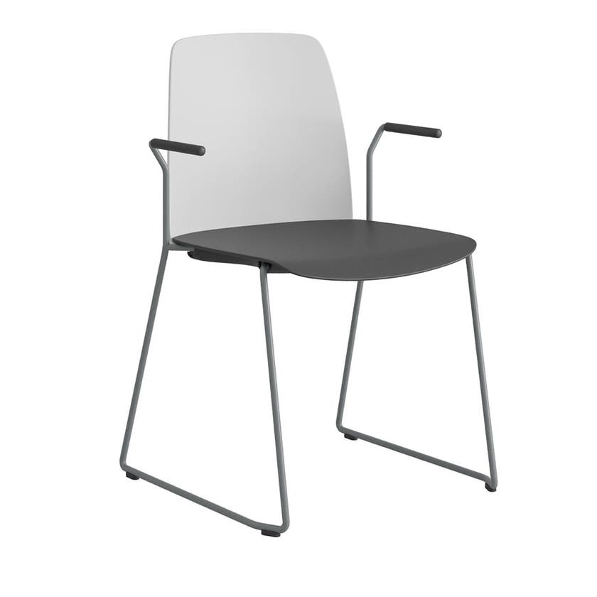 Stol Choice med medar och armstöd, vit plastrygg, svart plastsits, silvergrått stativ