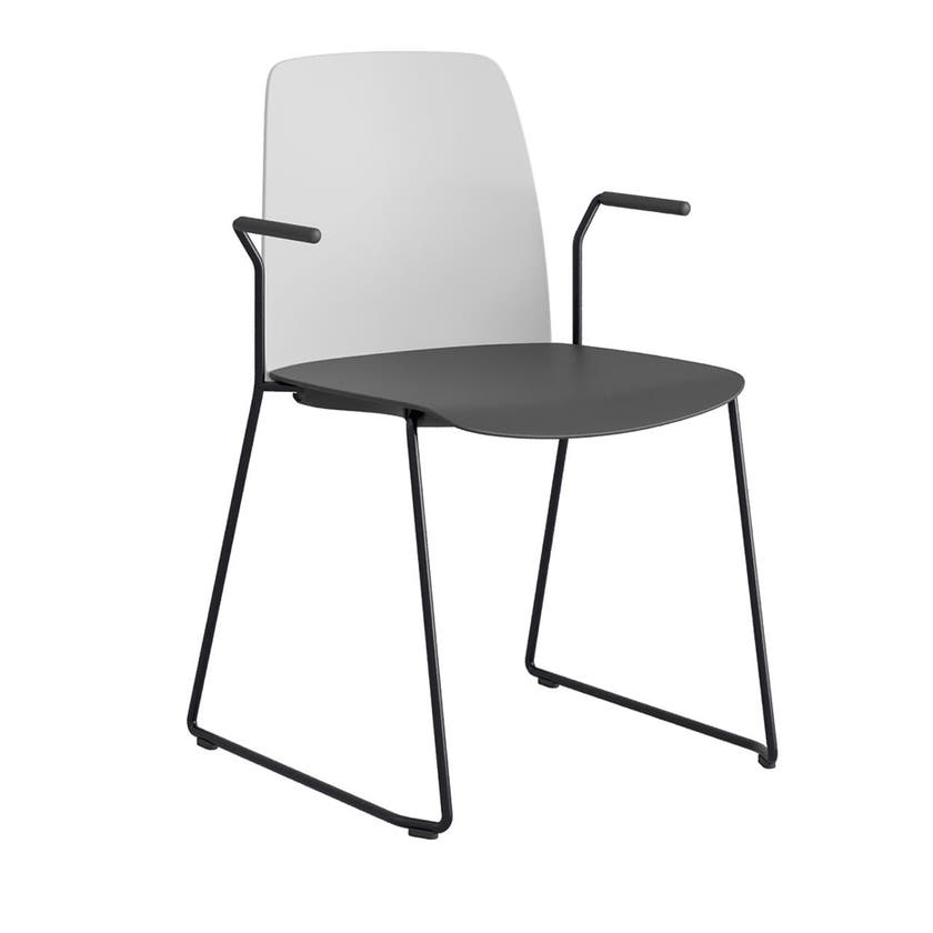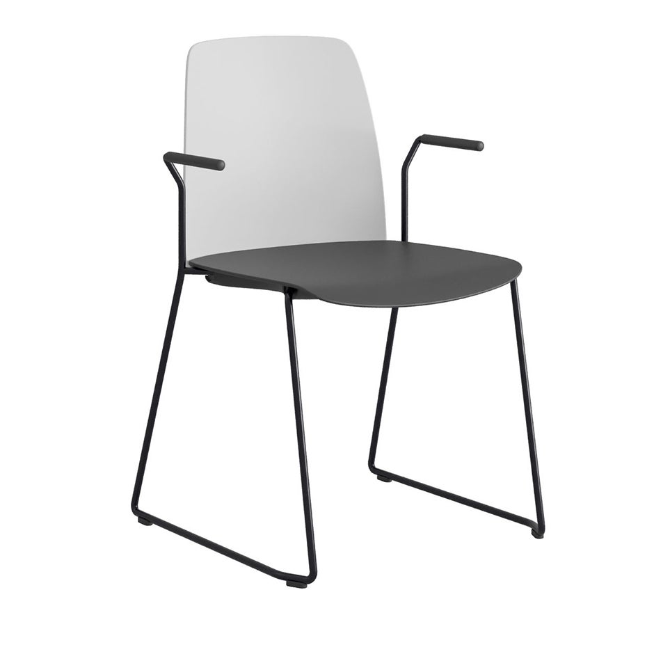Stol Choice med medar och armstöd, vit plastrygg, svart plastsits, svart stativ