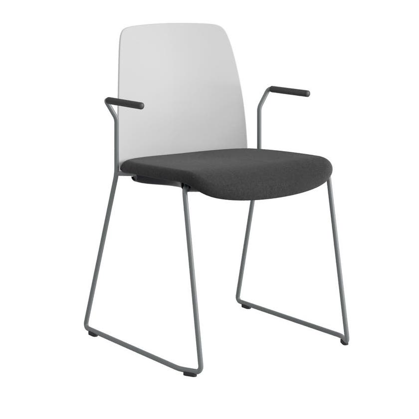 Stol Choice med medar och armstöd, vit plastrygg, svart tygklädd sits, silvergrått stativ