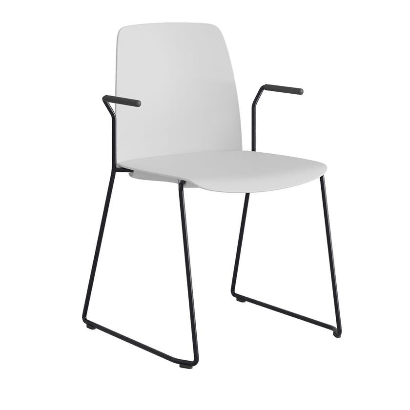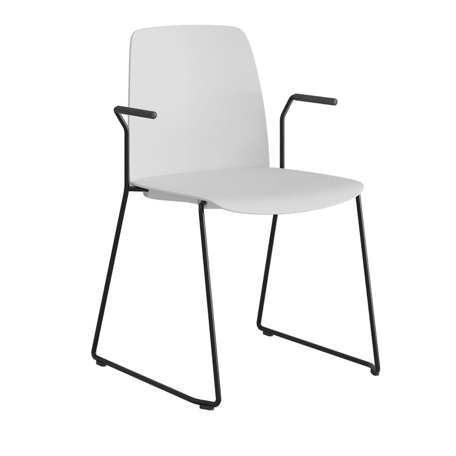 Stol Choice med medar och armstöd, vit plastrygg, vit plastsits, svart stativ