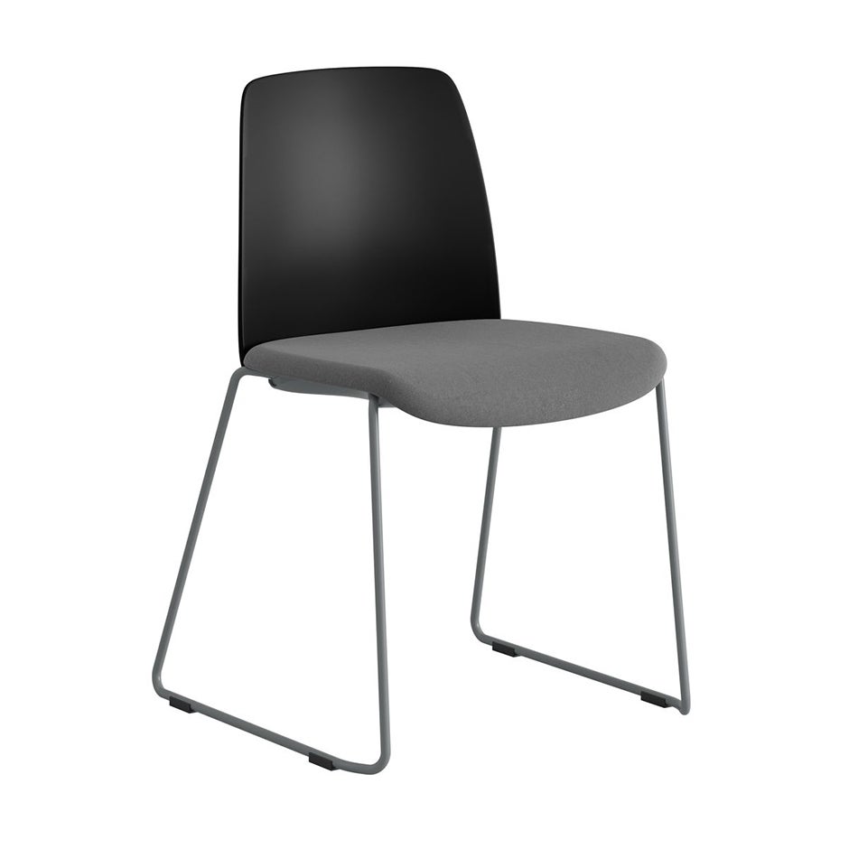 Stol Choice med medar, svart plastrygg, mörkgrå tygklädd sits, silvergrått stativ