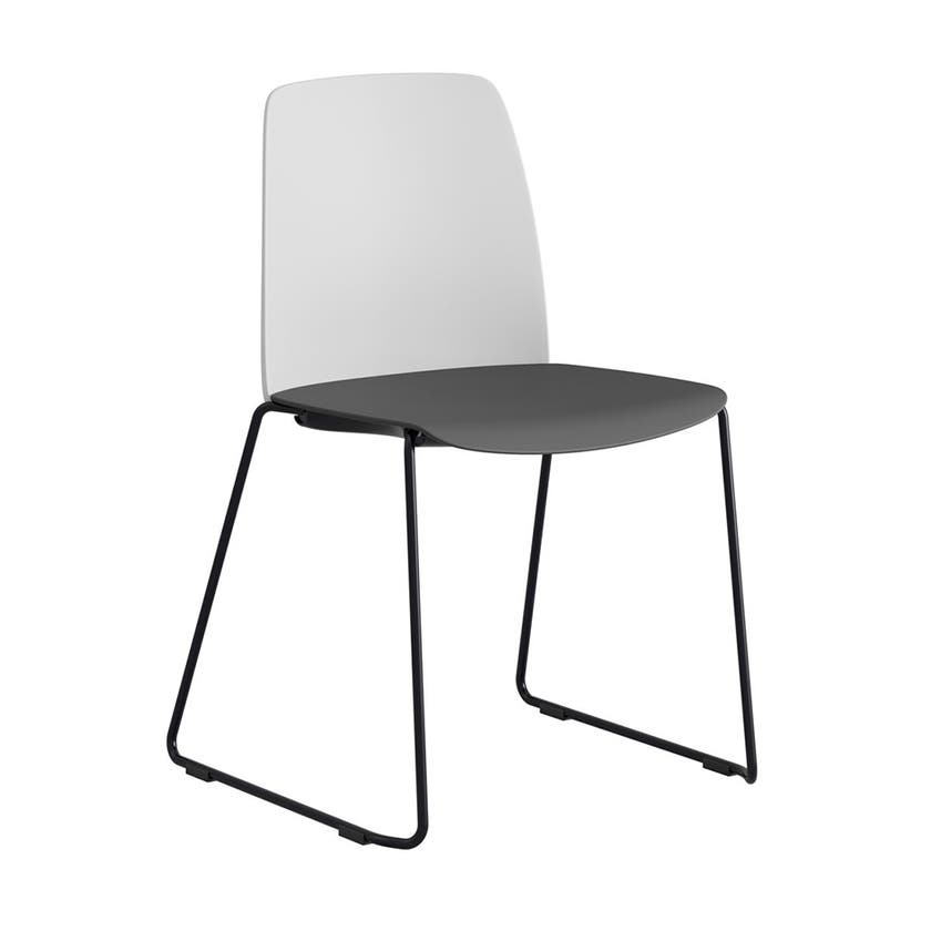 Stol Choice med medar, vit plastrygg, mörkgrå plastsits, svart stativ